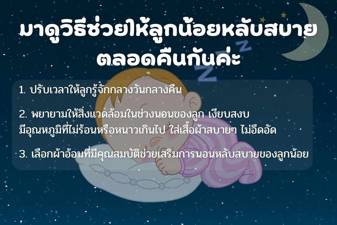 มาดูวิธีช่วยให้ลูกน้อยหลับสบายตลอดคืนกันค่ะ