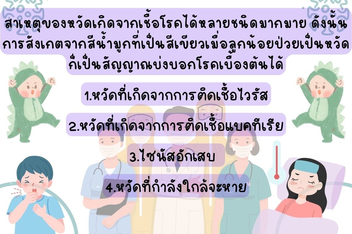 สาเหตุของหวัดเกิดจากเชื้อโรคได้หลายชนิดมากมาย ดังนั้นการสังเกตจากสีน้ำมูกที่เป็นสีเขียวเมื่อลูกน้อยป่วยเป็นหวัด ก็เป็นสัญญาณบ่งบอกโรคเบื้องต้นได้