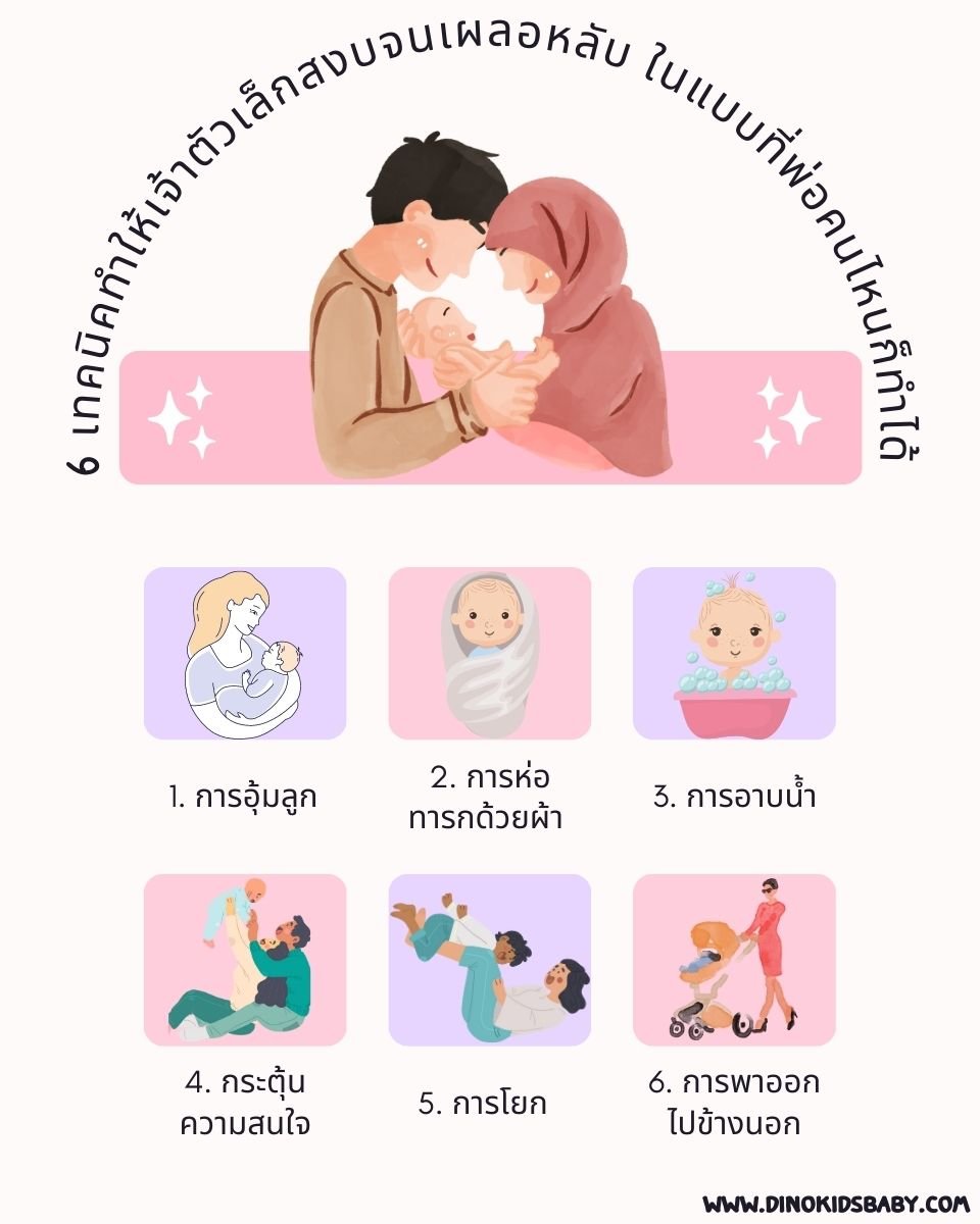 การทำให้ทารกหยุดร้องไห้ จะไม่ใช่เรื่องยากสำหรับคุณพ่อมือใหม่อีกต่อไป เพราะวันนี้ มีเคล็ดลับที่จะทำให้ลูกสงบ จนเจ้าตัวเล็กผลอยหลับไป มากฝากบรรดาคุณพ่อทั้งหลายที่อยากเบาแรงภรรยาด้วยการช่วยเลี้ยงลูกบ้างในบางเวลา มาฝากกัน