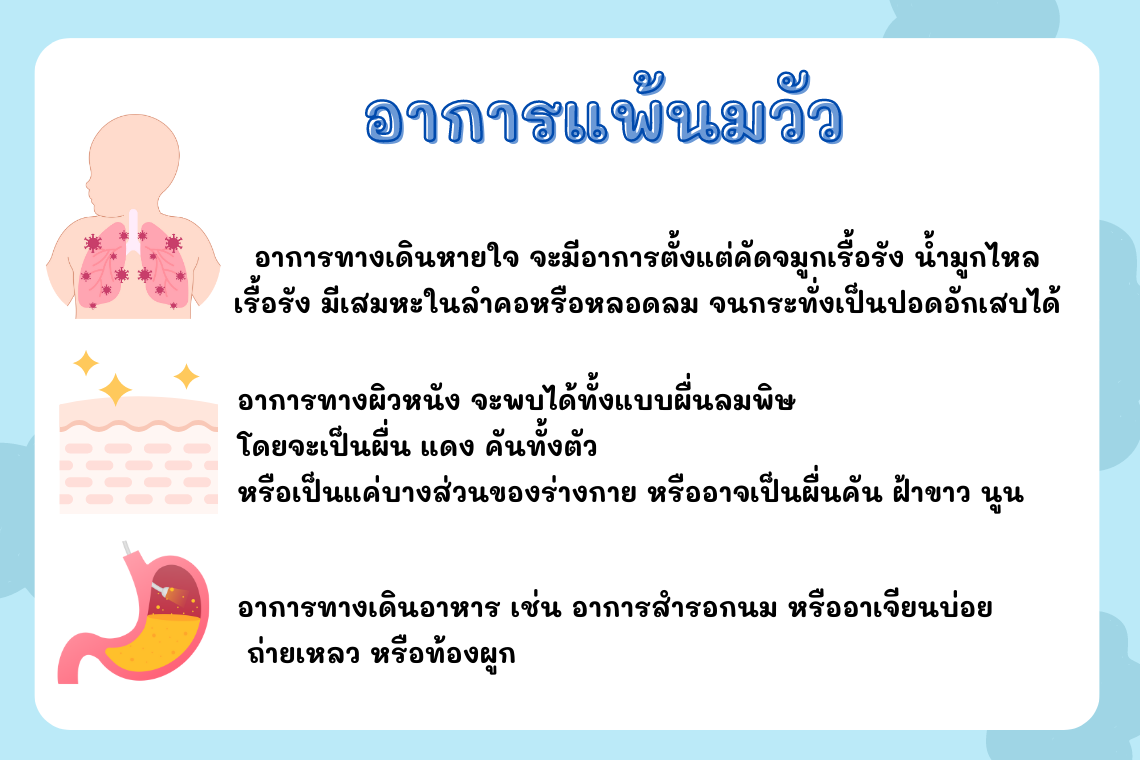 1. อาการทางผิวหนัง จะพบได้ทั้งแบบผื่นลมพิษ โดยจะเป็นผื่น แดง คันทั้งตัว หรือเป็นแค่บางส่วนของร่างกาย หรืออาจเป็นผื่นคัน ฝ้าขาว นูน